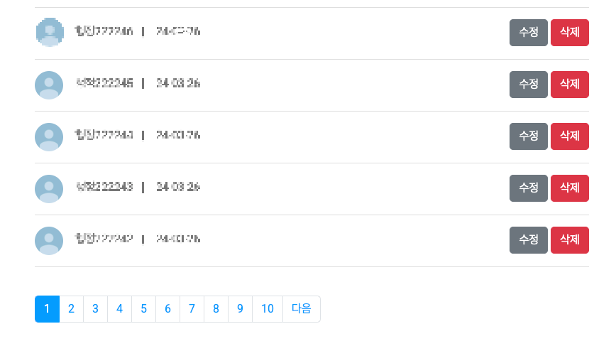 이제 전달받은 `pageResponseDTO`λ₯Ό μ‚¬μš©ν•΄ 화면을 λ‹€μŒκ³Ό 같이 μž‘μ„±ν•  수 μžˆλ‹€.